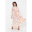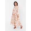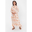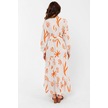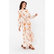 Desenli Yazlık Baharlık Keten Elbise 2103 Turuncu