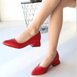 Desniy Kırmızı Cilt Kadın Topuklu Ayakkabı Kırmızı