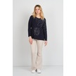 Detay Triko Kadın Boncuk İşlemeli Desenli Uzun Kol Anne Bluz 5737 Lacivert Lacivert