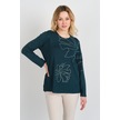 Detay Triko Kadın Boncuk İşlemeli Desenli Uzun Kol Anne Bluz 5737 Zümrüt Zümrüt