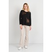 Detay Triko Kadın Boncuk İşlemeli Parlak Desenli Uzun Kol Anne Bluz 5744 Siyah Siyah