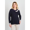 Detay Triko Kadın Boncuk Süslemeli Bisiklet Yaka Yanları Yırtmaçlı Anne Bluz 5723 Lacivert Lacivert