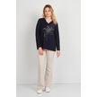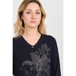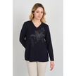 Detay Triko Kadın Önü Taş Süslemeli Yakası Boncuk Detaylı Uzun Kol Anne Bluz 5747 Lacivert Lacivert