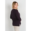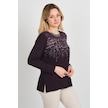 Detay Triko Kadın Taş Detaylı Desenli Yanları Yırtmaçlı Uzun Kol Anne Bluz 5741 Mürdüm Mürdüm