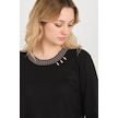 Detay Triko Kadın Yakası Ve Tek Kolu Desenli Taşlı Metal Aksesuarlı Anne Bluz 5714 Siyah Siyah