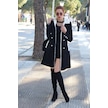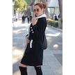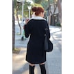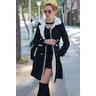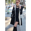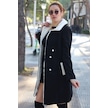 Düğmeli Cepli Kadın Peluş Kaban Siyah