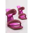 Dgn 2027 Kadin Kalin Silver Taş Bantli Topuklu Terlik 2027-2219-R13775 Fuşya