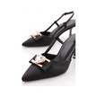 Dgn 24209 Kadin Kalp Taş Süslemeli Topuklu Ayakkabi Sıyah Saten