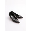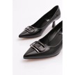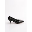 Dgn K510 Kadin Sivri Burun Aksesuarli Topuklu Ayakkabi Siyah Rugan
