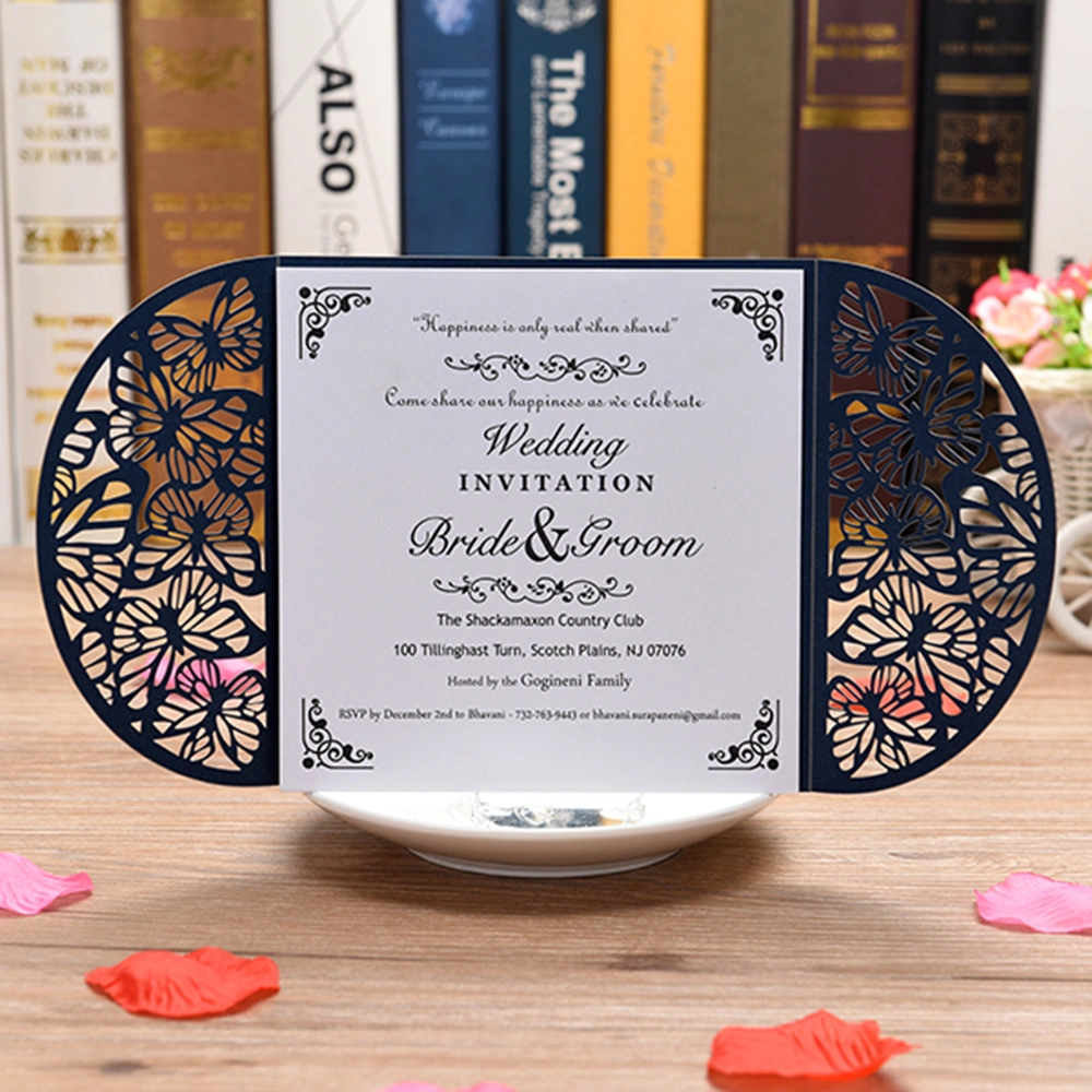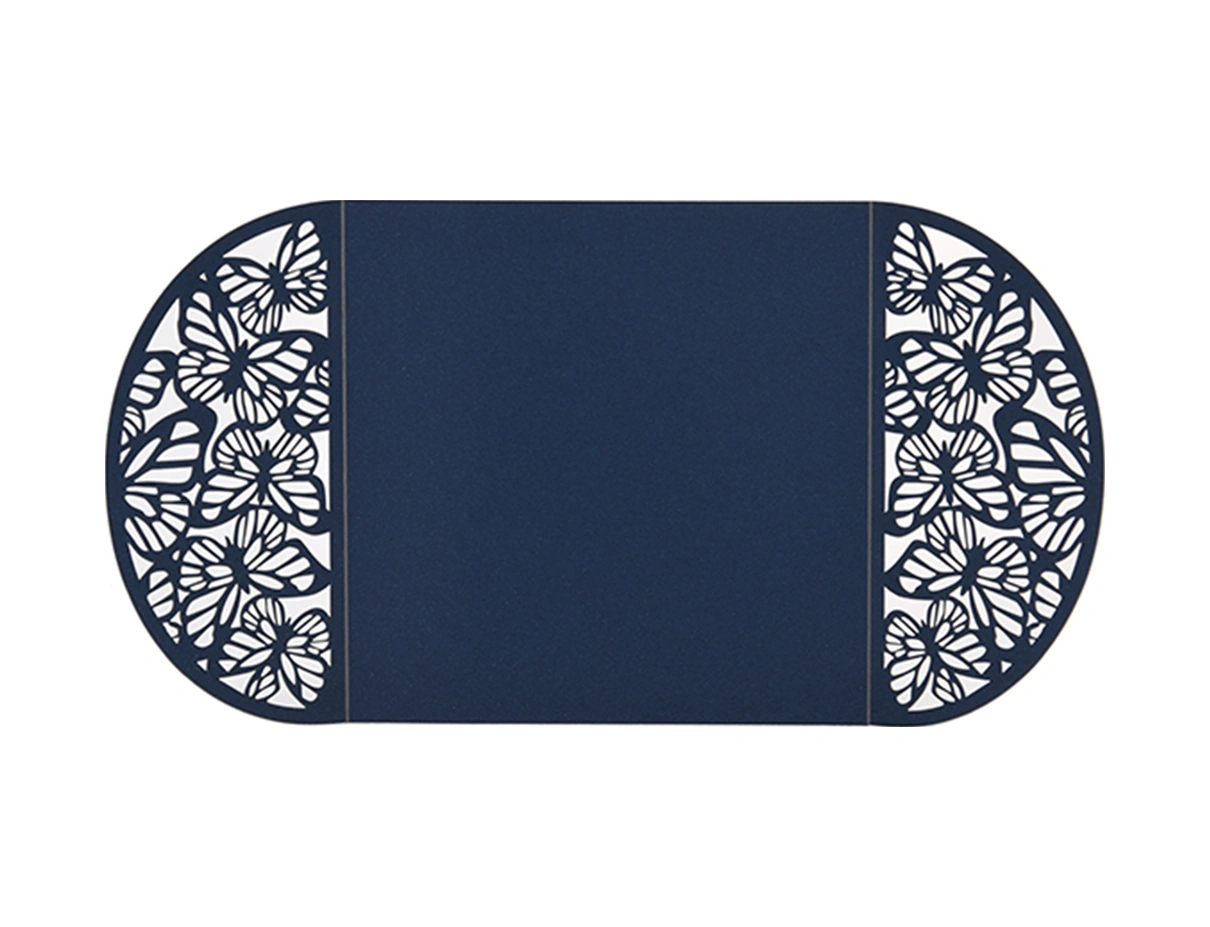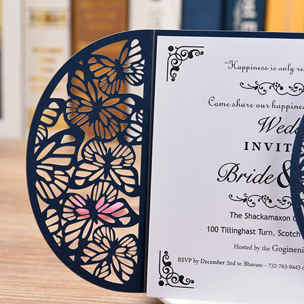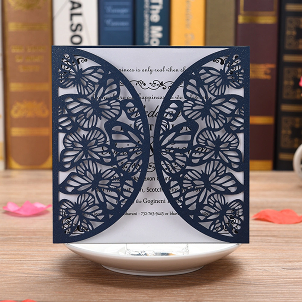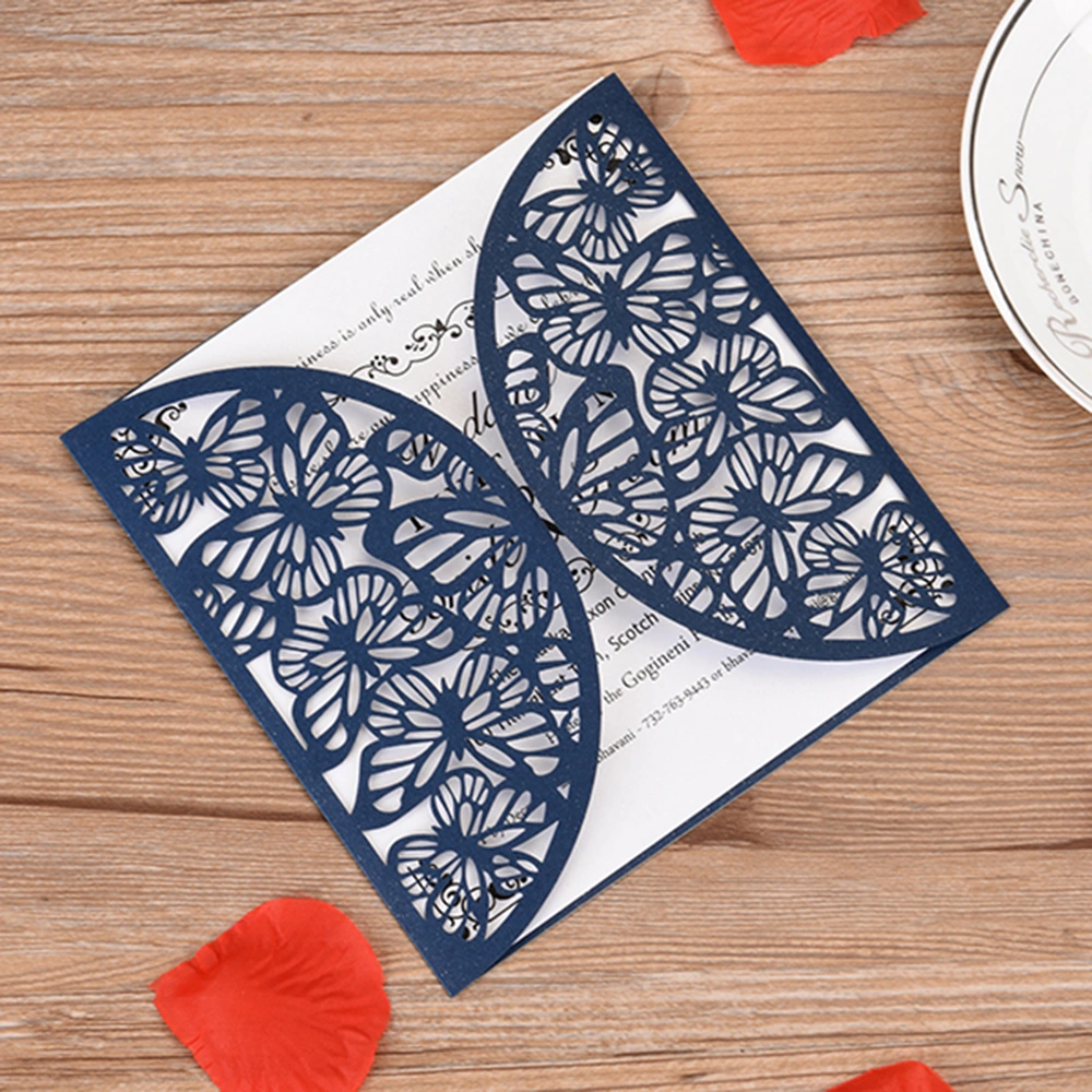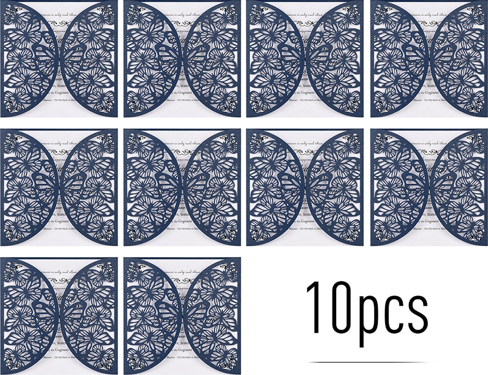 Dianziye 10'lu Deniz Mavisi Davetiye Seti - Zırhlı Kapak + İç Kart, Gelinlik-düğün-doğum Günü, Nakışlı Desenli, İnci Kağıt, Özel Etkili Davetler