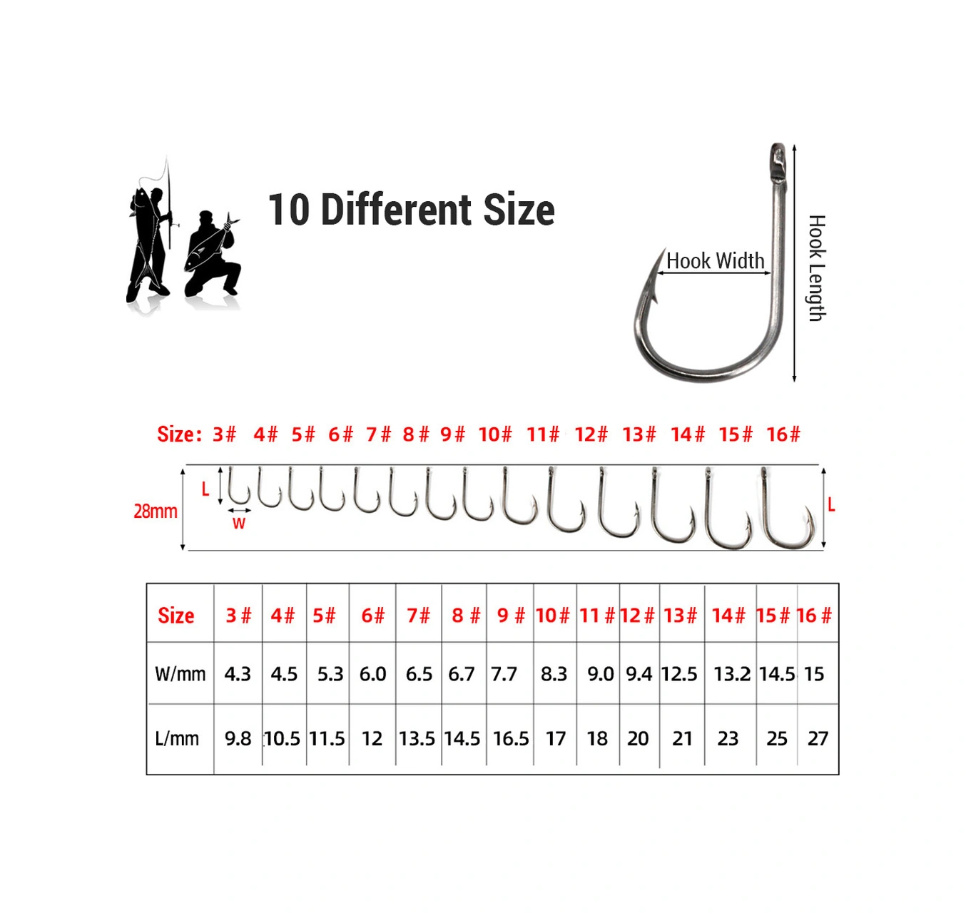 Ranyeek Lixada 600 Adet Delikli Çengelli Yüksek Karbonlu Çelik Balık Oltası Seti, 3 -12 10 Farklı Boyut, Siyah