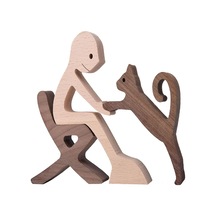 Dianziye Ahşap Köpek Aile Dekoratif Figür - İskandinav Tasarım, Doğal Dokuma, Ev Dekoru Ve Evcil Hayvan Anısı, 11x9x1.5cm