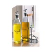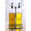 Digithome Aura 2'li Siyah Metal Standlı Ahşap Saplı Yağdanlık Seti Şeffaf Etiketli Cam Yağlık 1000 Ml Cys-19 Siyah