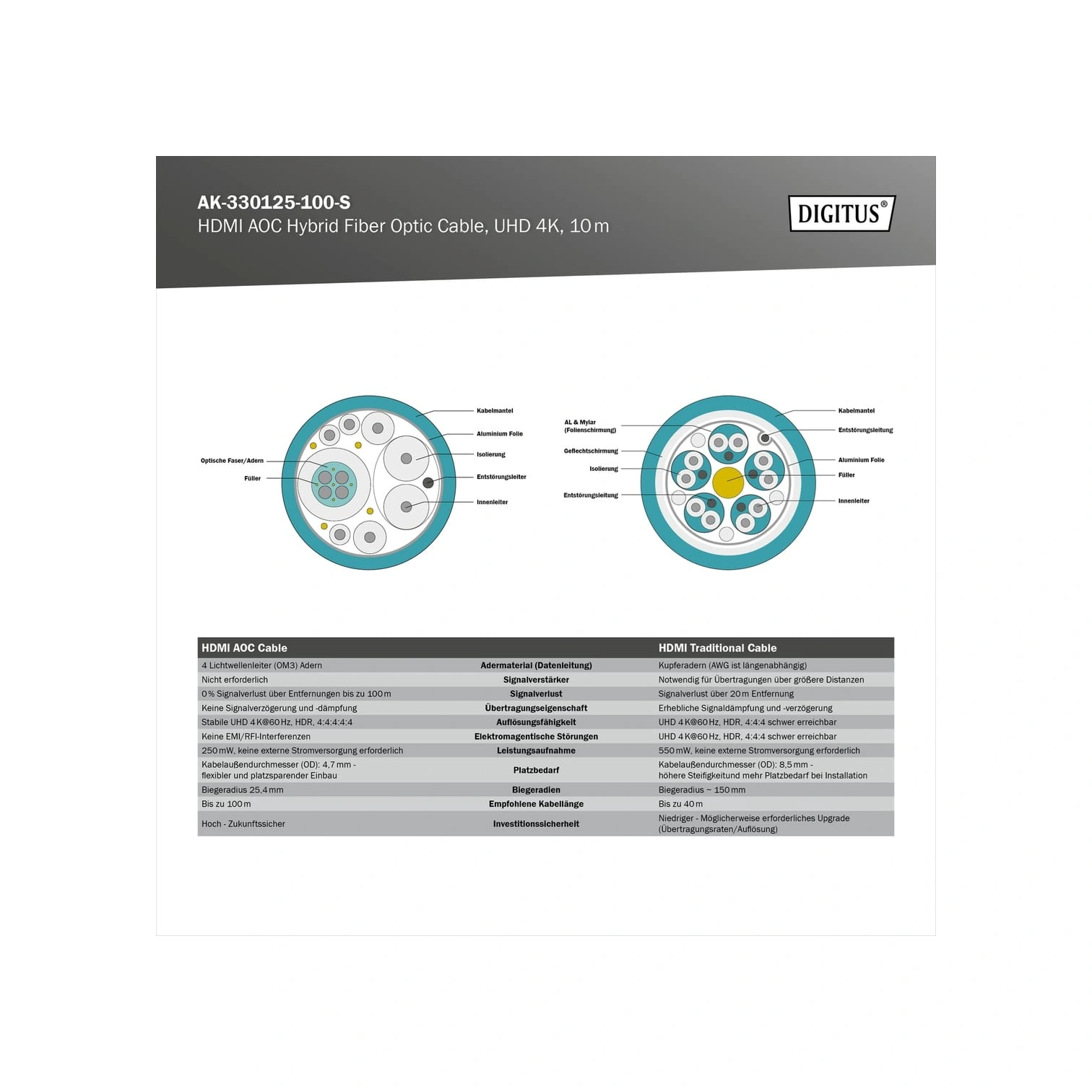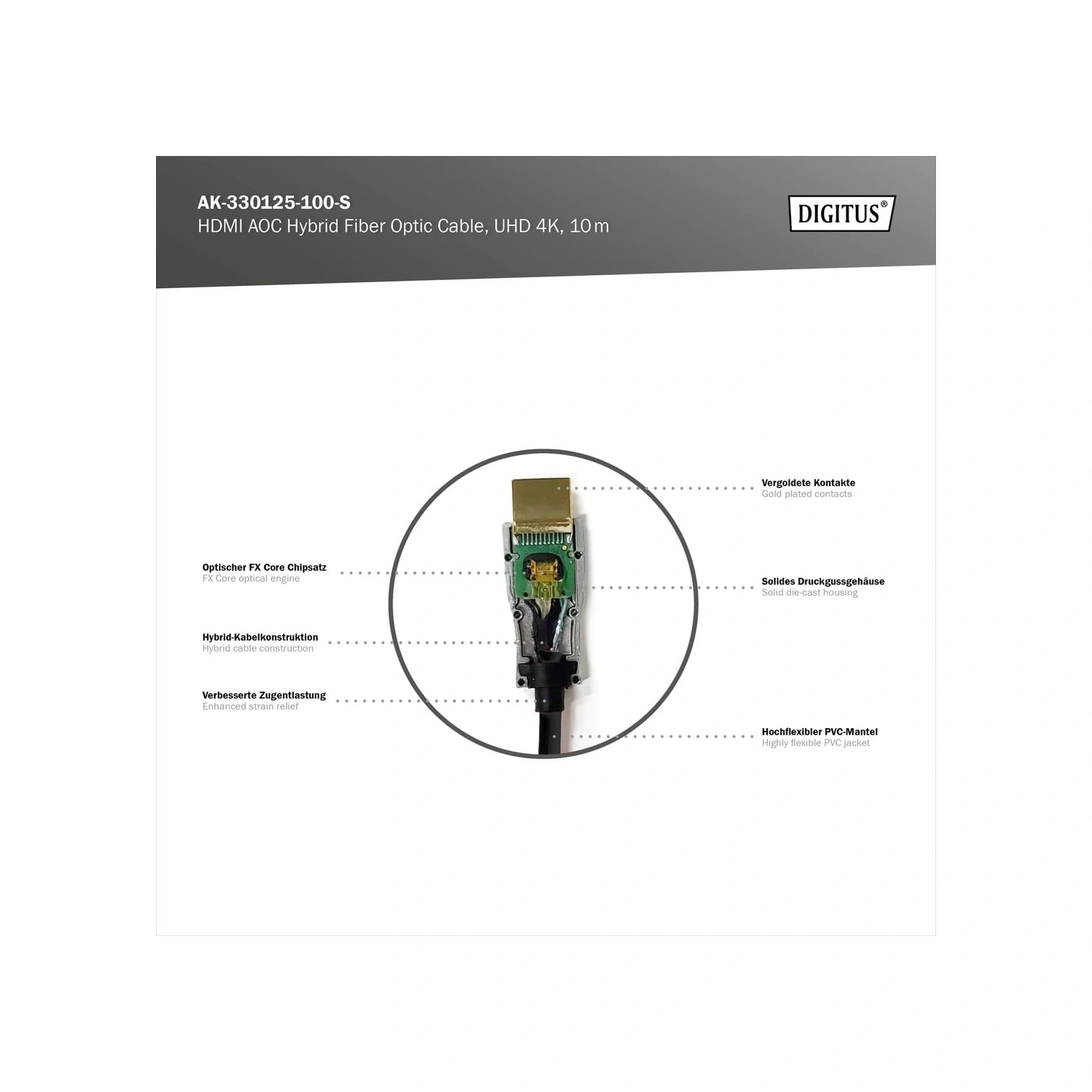 Digitus 10 Metre 4k Fiber Hdmı Kablo Sıkıştırmasız Görüntü Aktarımı Aoc