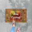 Dijital Baskılı Hoşgeldinizyazılı Karşılama Paspas Gül Desen - Kapı Önü Dekoratif Paspas Açıkkahverengi - Bej