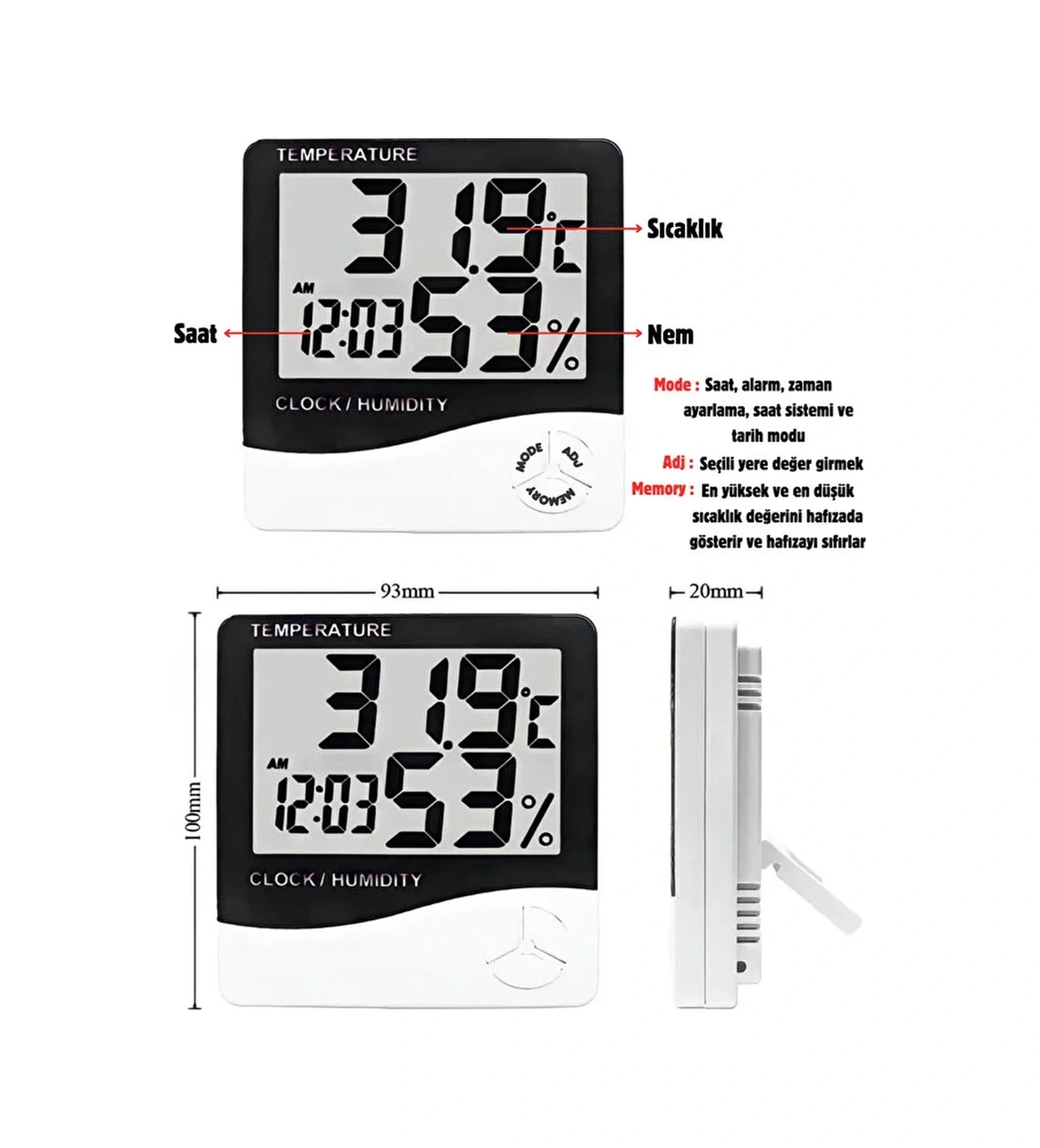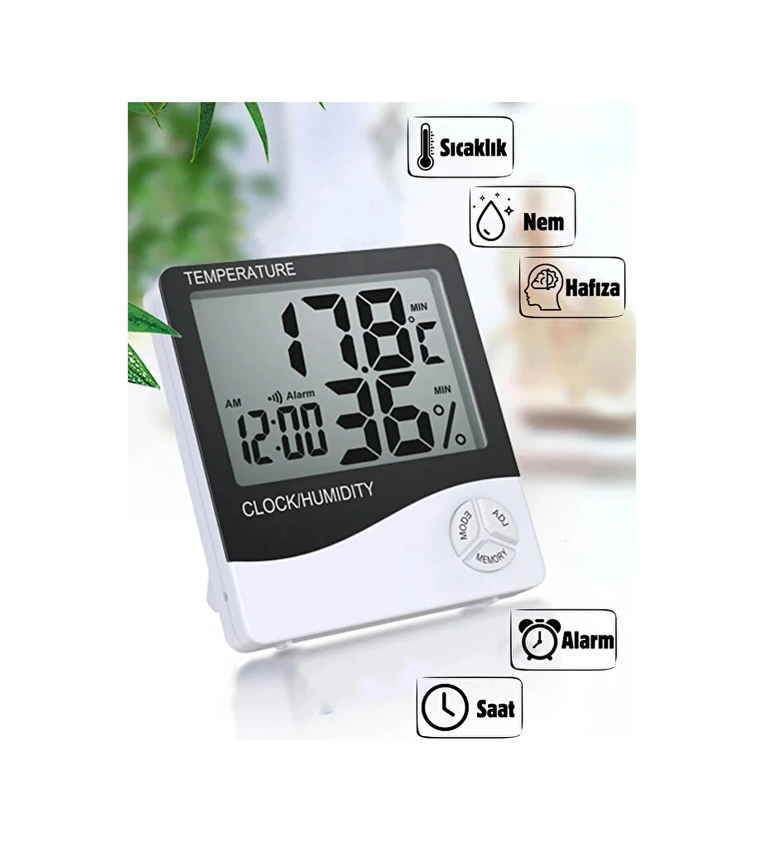 Dijital Oda Termometre Sıcaklık Ve Nem Ölçer Masa Saati Alarm Beyaz