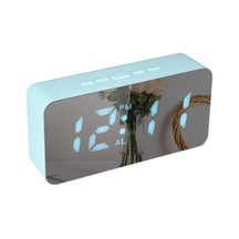 Dijital Renkli Rgb Led Aynalı Çalar Saat Usb/pil İle Çalışan Masaüstü Termometre Saat Ayarlanabilir Aydınlatma 3 Alarm Erteleme Fonksiyonu Usb Şarj Fonksiyonu--mavi