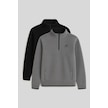 Dik Yaka Yarım Fermuarlı 2li Paket Siyah-gri Melanj Erkek Polar Sweatshirt - 87891 Siyah - Gri