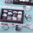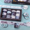 Dikdörtgen Vintage Washi Tape Bant Yapışkanlı Maskeleme Kağıdı Desenli Bant 20'li - Siyah Seri Bant 1