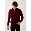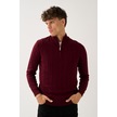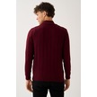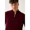 Dikey Dokuma Desenli Fermuarlı Triko Kazak Bordo