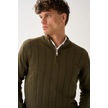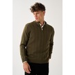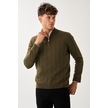 Dikey Dokuma Desenli Fermuarlı Triko Kazak Haki