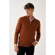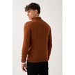 Dikey Dokuma Desenli Fermuarlı Triko Kazak Kiremit
