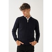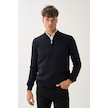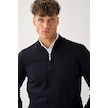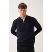 Dikey Dokuma Desenli Fermuarlı Triko Kazak Lacivert