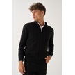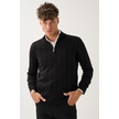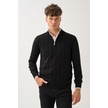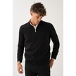 Dikey Dokuma Desenli Fermuarlı Triko Kazak Siyah