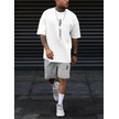 Dikey T-shirt Şort - Beyaz Gri Alt Üst Kombin Şort Tişört Takım Baskılı Oversize Bisiklet Yaka Beyaz Gri