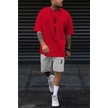 Dikey T-shirt Şort - Kırmızı Gri Alt Üst Kombin Şort Tişört Takım Baskılı Oversize Bisiklet Yaka Kırmızı Gri