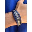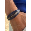 Dikiş Desenli Lacivert El İşçiliği İle Üretilmiş Hakiki Deri Erkek Bileklik Lacivert