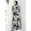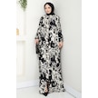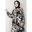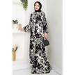 Düğme Detaylı Çiçekli Viskon Elbise - Siyah / E0123 Siyah