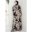Düğme Detaylı Çiçekli Viskon Elbise - Siyah / E0123 Siyah