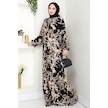Dilşen Düğmeli Dokuma Viskon Elbise 1562 - Vizon Vizon