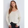 Dilvin 10706 Oval Yaka Yumuşak Dokulu Triko Kazak Ekru