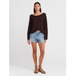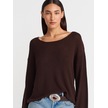 Dilvin 10706 Oval Yaka Yumuşak Dokulu Triko Kazak-koyu Kahve Koyu Kahve