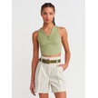 Dilvin 20844 Önü Düğmeli Top-haki Haki