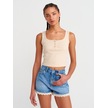 Dilvin 20983 Düğmeli Kare Yaka Top-bej Melanj Bej Melanj