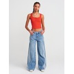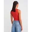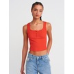 Dilvin 20983 Düğmeli Kare Yaka Top-Koyu Kırmızı