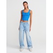 Dilvin 20983 Düğmeli Kare Yaka Top-saks Saks