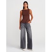 Kadın Askılı Yuvarlak Yaka Geometrik Desenli Triko Bluz Bej