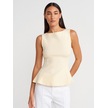 Dilvin 21001 Kayık Yaka Peplum Top-açık Sarı Açık Sarı