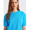 Dilvin 30312 Dekoratif Dikişli Bisiklet Yaka Tshirt-turkuaz Turkuaz