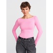 Dilvin 31332 Kayık Yaka Uzun Kollu Top-pembe Pembe