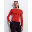 Dilvin 31401 Büzgülü Kayık Yaka Top-kırmızı Kırmızı