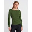 Dilvin 31401 Büzgülü Kayık Yaka Top-koyu Haki Koyu Haki