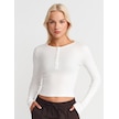 Dilvin 31442 Uzun Kollu Çıtçıt Düğmeli Top-ekru Ekru