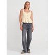 Koton Keten Karışımlı Crop Oversize Üst Kolsuz Yuvarlak Yaka Kareli Bej Ekose 4sak30018uw Bej