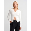 Dilvin 31993 Fermuar Detaylı Uzun Kollu Top-ekru Ekru
