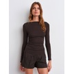 Dilvin 32198 Kayık Yaka Büzgülü Top-koyu Kahve Koyu Kahve
